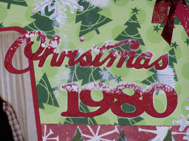 Practical Scrappers' challenge for the week was to use Acrylic paint on a layout or card. I used it on this layout for my mom's 50th b-day album. I kinda used it as snow on a majority of the layout and then I also used it to stamp the "S" on the tree next to the picture. My parents last name is Stoffel. This is a picture of my parents at their apartment in 1980, standing in front of their Christmas tree. My mom was actually pregnant with me! Thanks for looking.